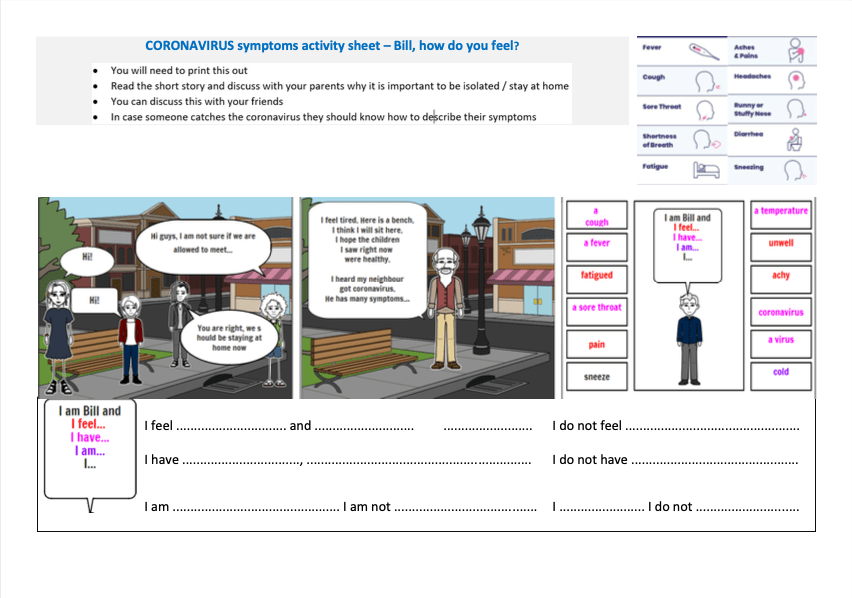 This is an activity for children to learn some basic health terminology to be able to describe symptoms in case they catch a virus. Download a copy of the accompanying resource here.